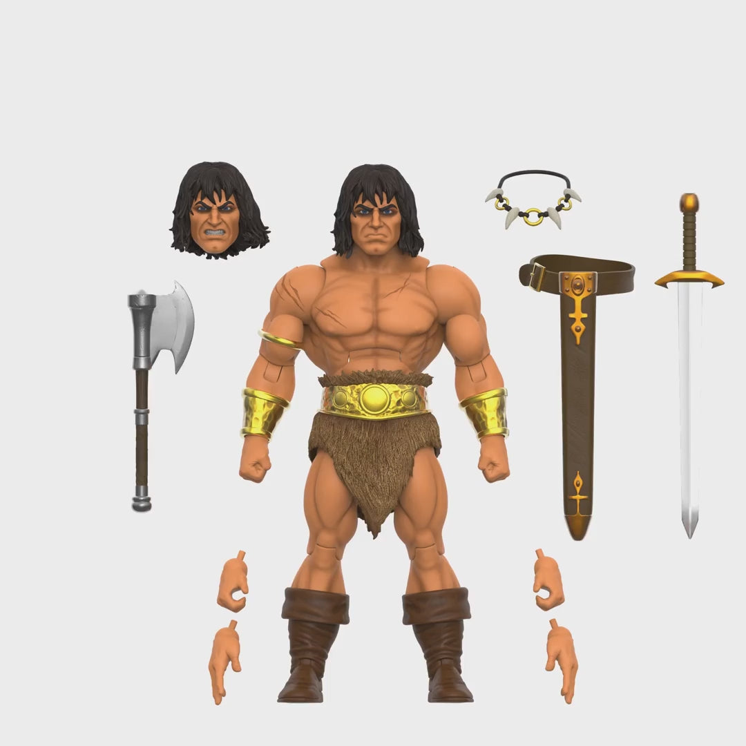 Conan the Barbarian is an unstoppable force and anyone foolish enough to stand against him will likely not live long enough to regret their poor judgment! This 7” scale, highly articulated Conan ULTIMATES! figure of Conan the Barbarian is inspired by his appearance in late 70’s comic books, and its intricate sculpt and premium paint detail leave no doubt as to his ferocity and determination. Featuring interchangeable heads and hands, this figure also comes with a soft goods loin cloth and axe, sword with removable sheath, and necklace accessories. There’s no adventure or challenge that this Conan Conan the Barbarian ULTIMATES! can’t take on!