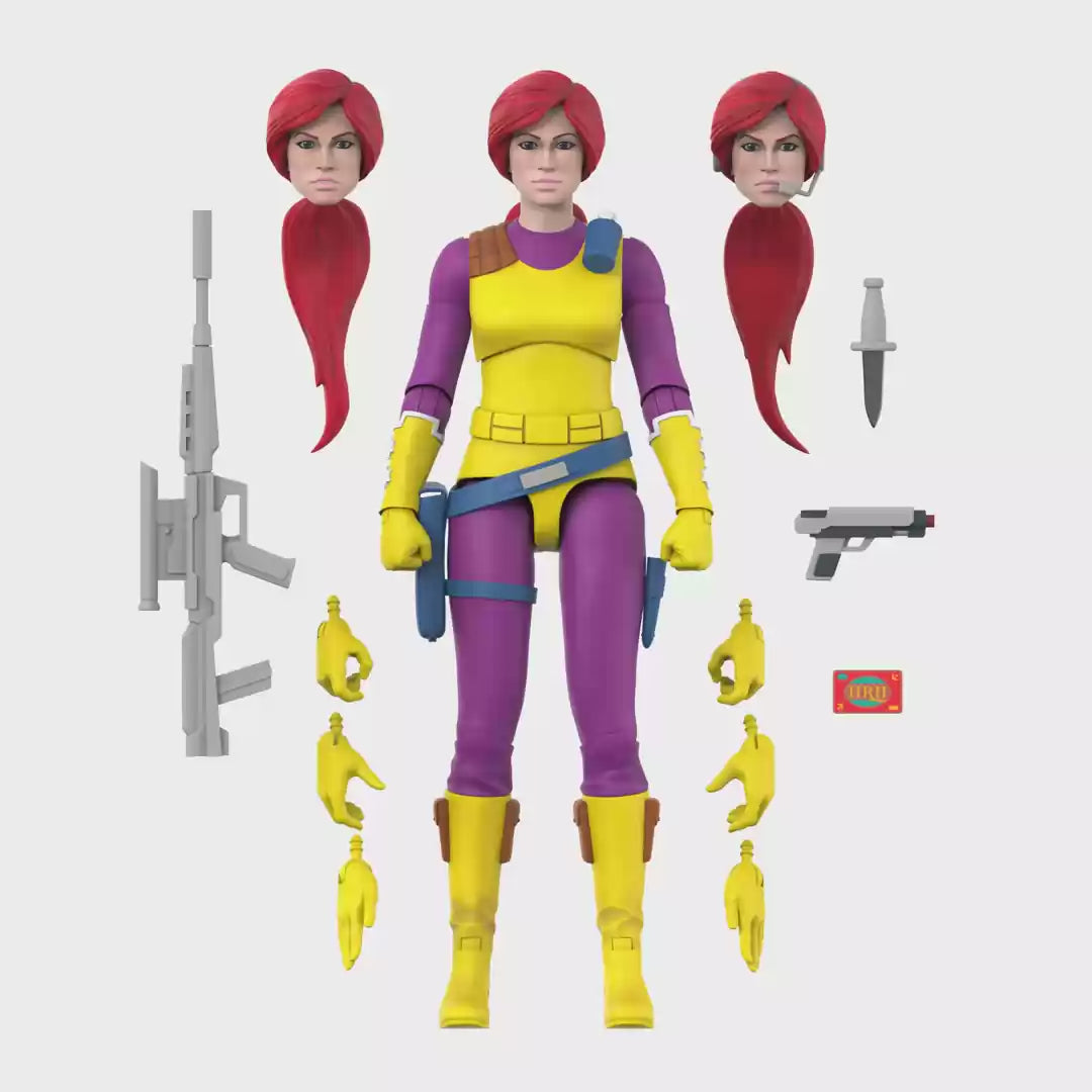 As a martial arts expert, Scarlett often prefers to take a hands-on approach when it comes to foiling Cobra’s devious plans! This 7” scale, highly articulated G.I. Joe ULTIMATES! Figure of Scarlett is inspired by her appearance in the DIC-era animated series and depicts the Counter Intelligence officer in a purple and yellow uniform. Featuring intricate sculpt and premium paint detailing, this figure also comes with multiple interchangeable heads and hands, and an assortment of accessories including an array of weapons, a credit card, and more! This made-to-order G.I. Joe ULTIMATES! Scarlett is sure to make an impact in your collection, so order yours today!