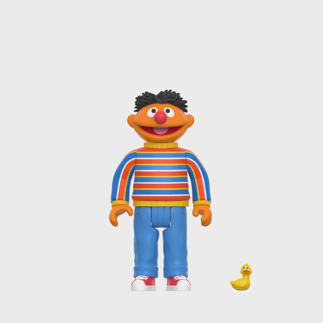 Playful and always curious, sometimes Ernie’s enthusiasm can be a bit much for his friend and roommate Bert! This articulated, 3.75” scale Sesame Street ReAction Figure of Ernie features him looking just how you remember, with a horizontal stripe shirt and blue jeans, and comes with Rubber Duckie accessory. The Sesame Street ReAction Figure of Ernie will instantly take you back to a time when you or your children were learning the basics, every time you look at it in your collection!