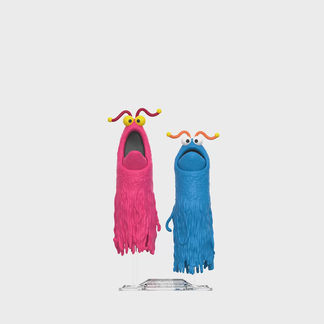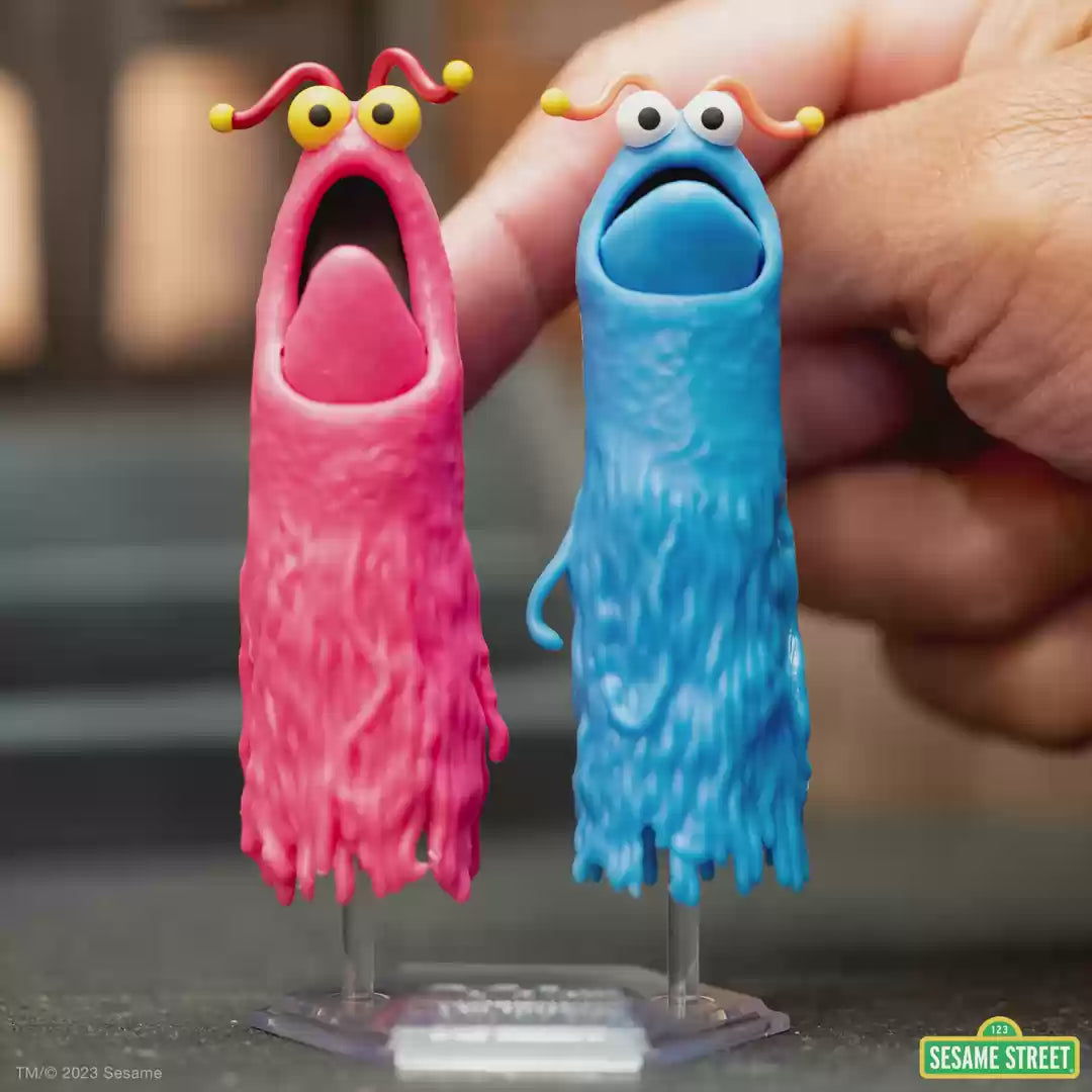 “Yip, yip, yip, yip...uh-huh, uh-huh”. When these Martians visit Sesame Street they often try to interact with inanimate objects that they incorrectly identify, with hilarious results! These 3.75” scale Sesame Street ReAction Figures of the Yip Yip Martians feature the pink and blue extraterrestrials with articulated mouths and includes a peg stand that allows them to appear to float when displayed. The Sesame Street ReAction Figure of the Yip Yip Martians will instantly take you back to a time when you or your children were learning the basics, every time you look at it in your collection!