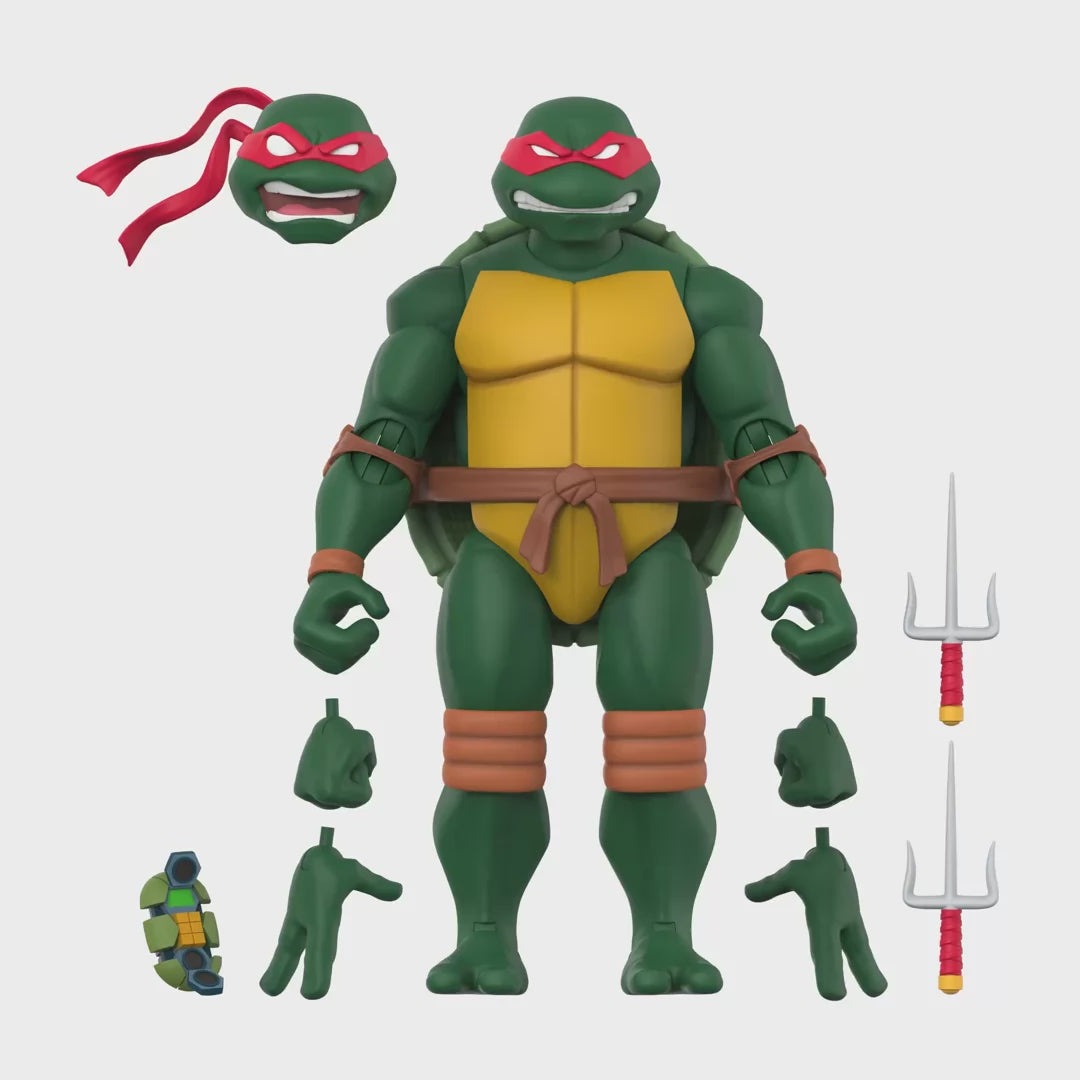 Michelangelo loves to have a good time, and that usually means fighting the bad guys on, and sometimes below, the streets of NYC! This highly articulated, 7” scale Teenage Mutant Ninja Turtles ULTIMATES! Michelangelo is inspired by his appearance in the 2003 animated series and features intricate sculpting, premium paint detail, interchangeable heads and hands and a variety of crime fighting accessories, including a pair of real metal chain nunchucks as well as a pair of spin effects nunchucks. Also, for the first time, double jointed arms and knees for more poseability! This TMNT ULTIMATES! Michelangelo can help transform your TMNT collection, no Mutagen Ooze required!